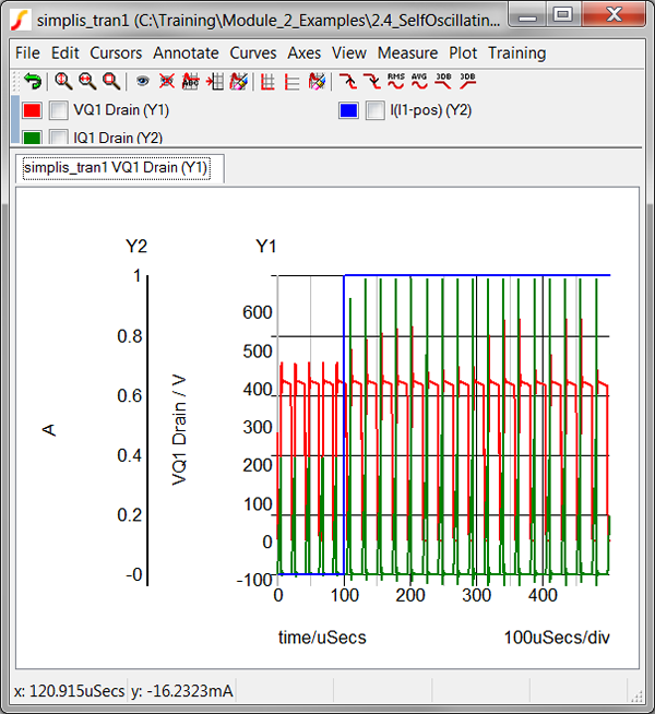 In the previous topic, 2.3 Managing Simulation Data, you learned how to output voltage and current vectors to the data group. Once these vectors are present in the current data group, you can plot them on the waveform viewer. In SIMetrix/SIMPLIS, this action is called random probing, and is commonly used to debug circuits. In this section you will learn how to use some very powerful random probing functions.