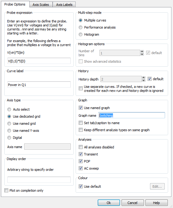 - In the Probe expression box, enter the expression: V(D,S)*I(D).