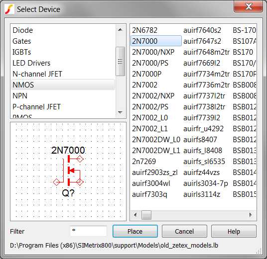 3. Select the 2N7000 from the list of available models: