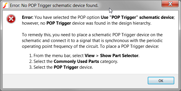 When the ASCII model for the LLC Modulator was created in the third exercise, the program searched out the POP Trigger gate information and placed the trigger gate information in the library file as a comment. In this exercise you will copy that information and change the POP Analysis to use this fixed trigger gate.