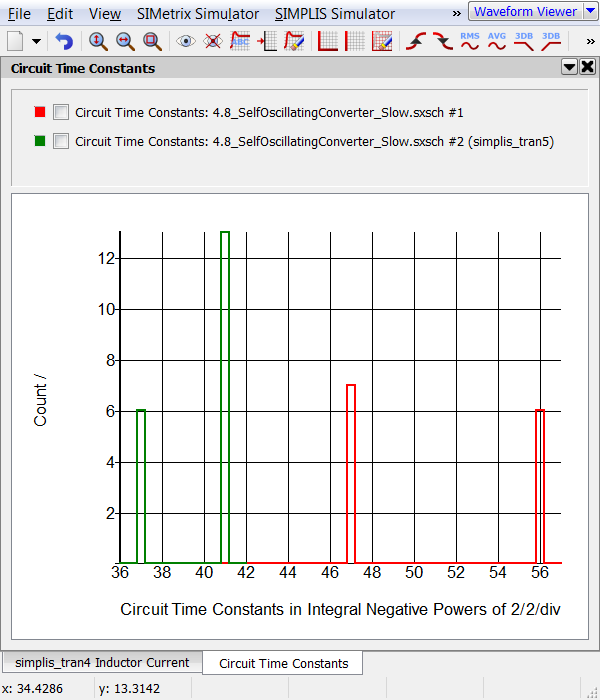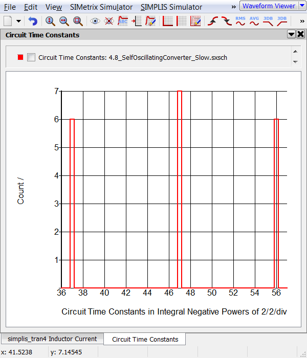 In this exercise the Average Topology Duration parameters were set to find a single PWL topology whose time duration was less than 1a (10-18) second. This well controlled experiment demonstrates one way to use the Average Topology Duration feature. The fact that a model spends a very short time in a single PWL topology does not mean the model is will simulate slowly. It is the rapid changing, or oscillating between PWL topologies which results in a slow simulation. Fortunately, real power supply circuits which display this behavior are few and far between. All examples of this behavior come from customers circuit which contain proprietary information and therefore cannot be included in this topic.