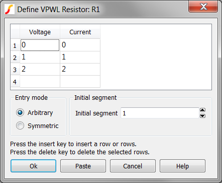 Result: The Define VPWL Resistor: R1 dialog opens: