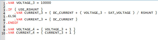 .VAR CURRENT_3 = { DC_CURRENT + ( VOLTAGE_3 - SAT_VOLTAGE ) / RSHUNT }