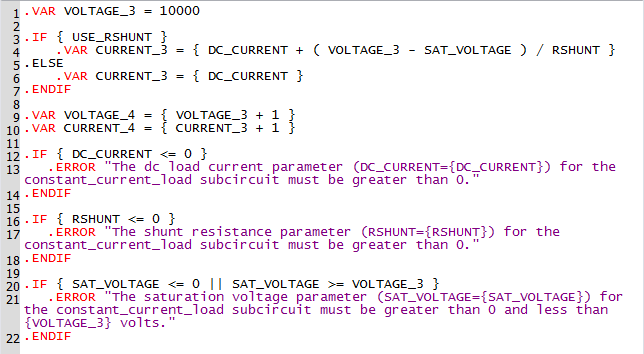 In this part you will use the .IF/.ENDIF and .ERROR constructs to check if the parameter values are within the ranges allowed by the model.
