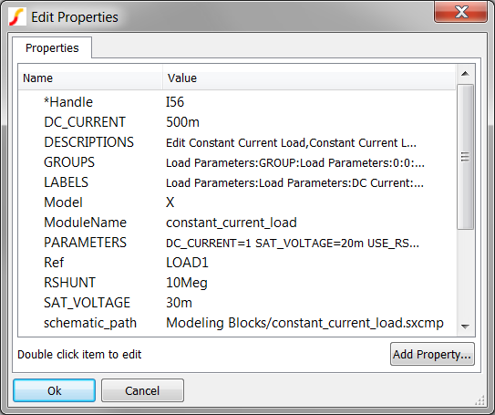 3. Change the DC_CURRENT, RSHUNT, and SAT_VOLTAGE properties to 0.