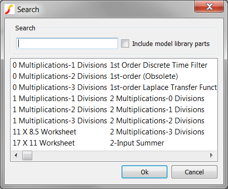 Result: The list of SIMPLIS compatible devices containing the text string pwl (case-insensitive) is displayed below the Search field: