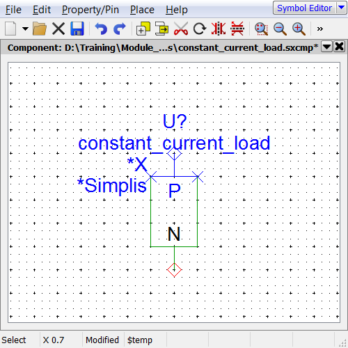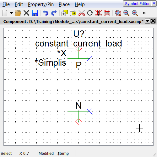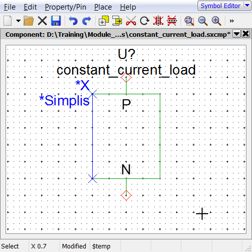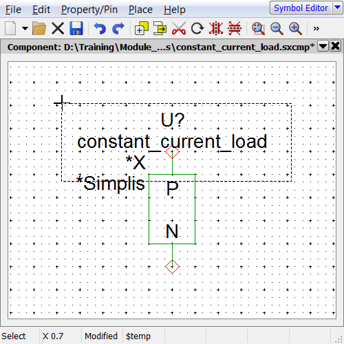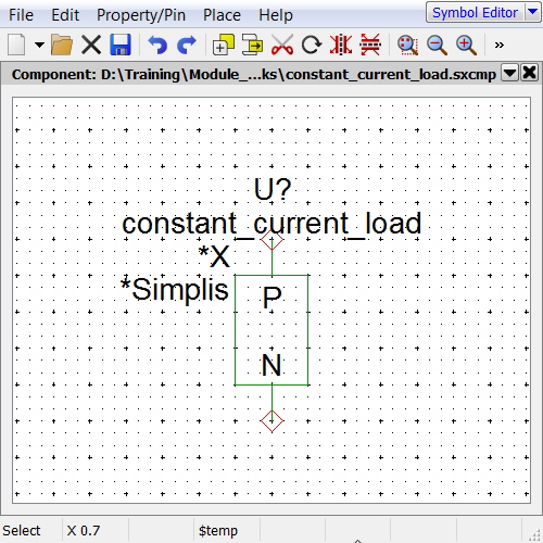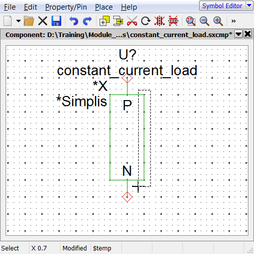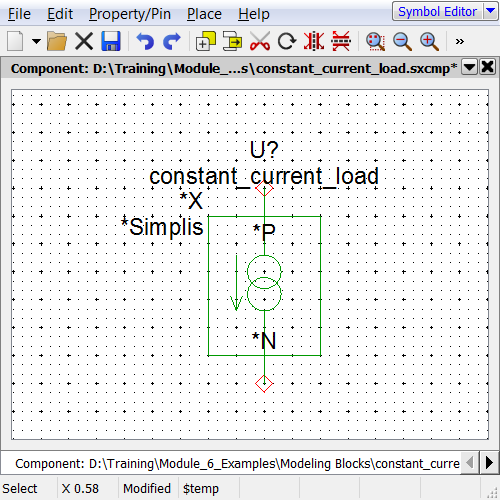 7. Enter constant_current_load.sxcmp in the File name field and click Save to save the schematic component.