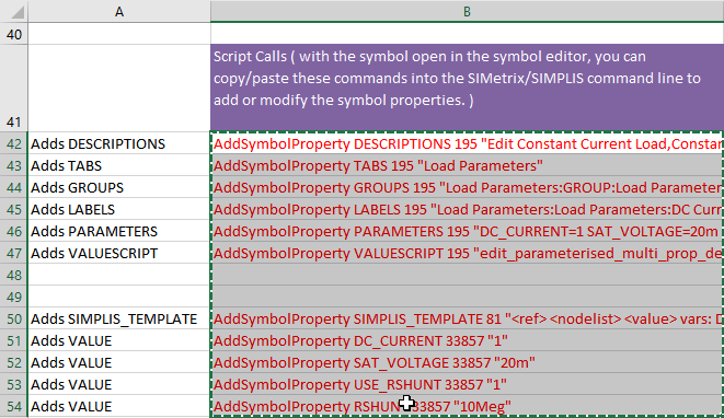 Result: The commands are executed in SIMetrix/SIMPLIS. Each AddSymbolProperty command adds a single symbol property to the symbol. As in previous exercises, the dialog definition properties are protected. All properties are hidden from view when the symbol is placed on the parent schematic.