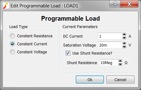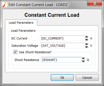 In the three previous topics, you created constant resistance, constant current, and constant voltage load subcircuits. Each load is self-contained with parameters passed into the underlying model through the symbol, and each load has a parameter editing dialog to edit the parameters. While these loads are well designed, with a convenient parameter editing dialog, a user has to manually delete one load symbol and replace it with another when changing the load type.