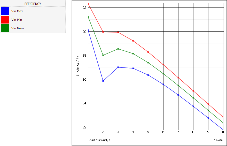 Efficiency|Step VIN and ILOAD Steady-State Multi-Step( ILOAD , LIN , 10 , 0.5 , 5.0 ) Multi-Step( VIN , LIST , 360 , 380 , 400 ) {VIN} {RLOAD} Alias( Efficiency , Efficiency_WHEN_VIN_%VIN% ) Alias( Efficiency , Efficiency_WHEN_ILOAD_%ILOAD% )