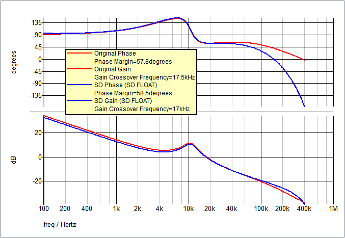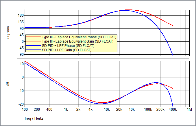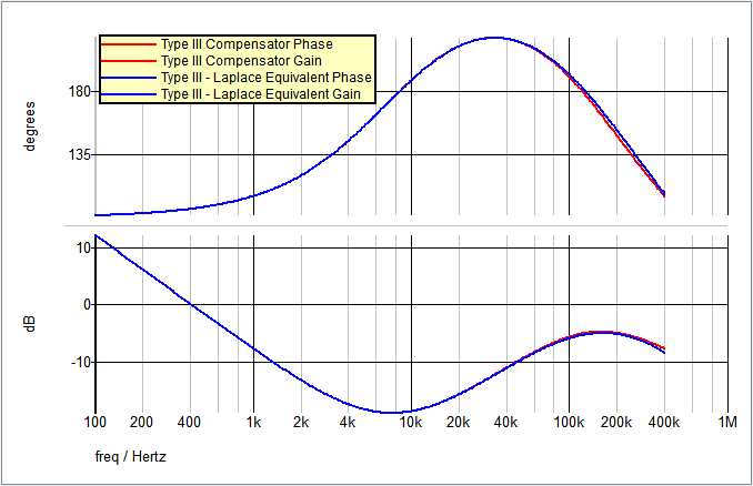 The AC results of the existing Type III compensation and the new 2nd Order Laplace equivalent are compared here: