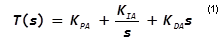 where KP, KI, and KD are coefficients entered in the dialog. To match the frequency response of the discrete PID filter represented by Eq. (3) to the frequency response of the analog PID filter represented by Eq. (2), a first-order approximation is to set KP KI and KD as follows: