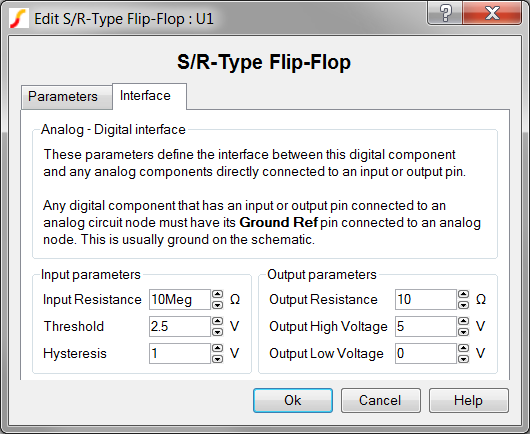 | Ground Ref | Determines whether or not a device has a ground reference pin. Any digital component that has an input or output pin connected to an analog circuit node must have its Ground Ref pin connected to an analog node. This is usually the ground on the schematic. |