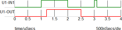 X$U1 2 1 SIMPLIS_DIGI1_D_ASYMMETRIC_DELAY_N vars: IC=0 RIN=10Meg ROUT=10 TH=2.5 HYSTWD=1.0 VOL=0 VOH=5 RISE_DELAY=2p FALL_DELAY=2p GNDREF='N'