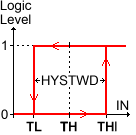 Threshold of the inputs. The hysteretic-window width, HYSTWD