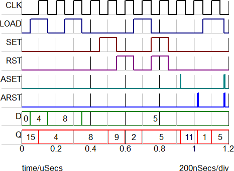 | LOAD | SET | RST | ASET | ARST | CLK | Q | |
