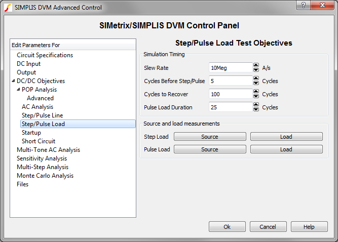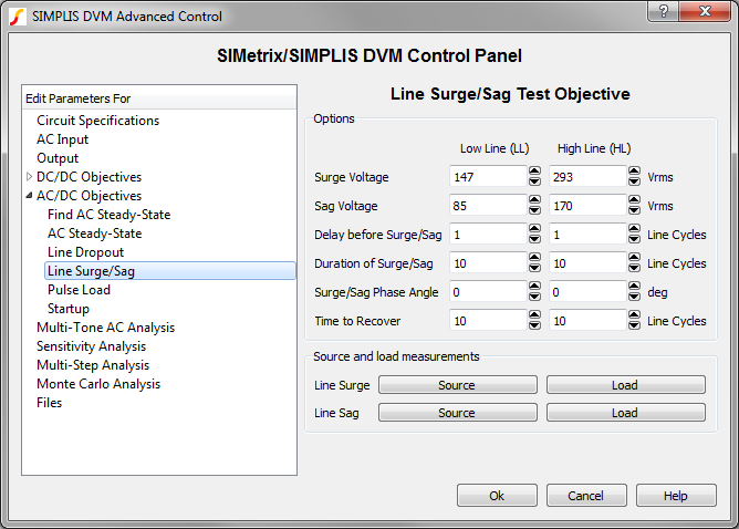 also includes specifications for the sources and loads, as well as performance