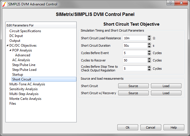 objectives will be performed; if not checked, theShortCkt() test objectives will be