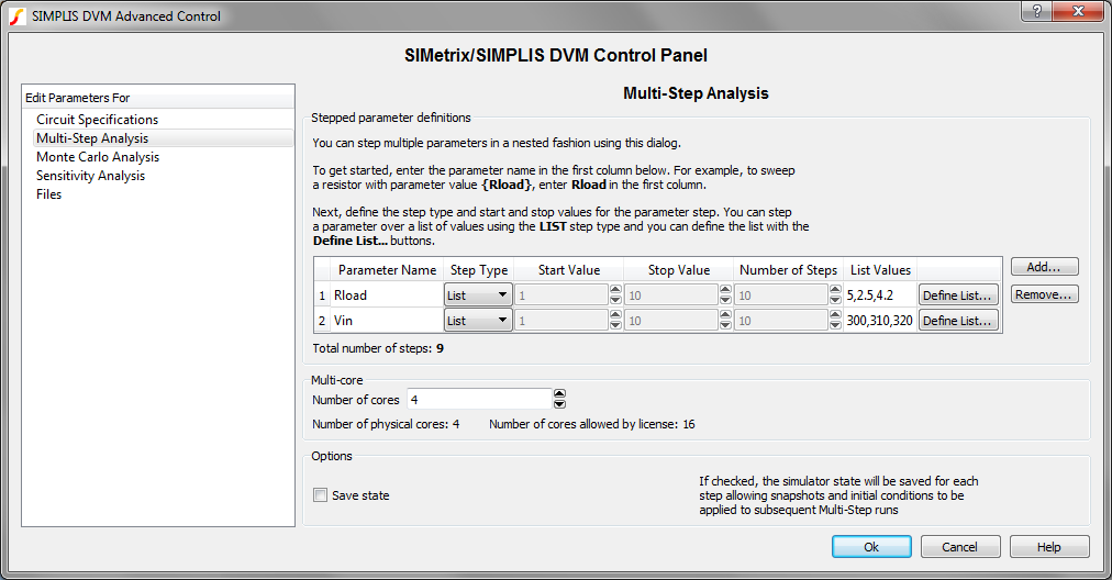 If checked, SIMPLIS will save initial