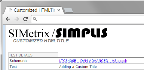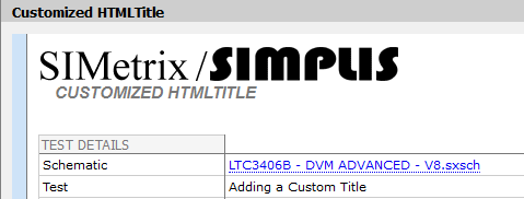The HTMLTitle column allows you to specify the title of the test report generated for each simulation run. The "title" in this context appears in multiple places: