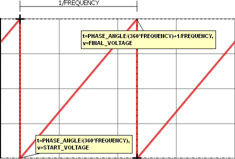 | START_VOLTAGE | n/a | The valley or starting voltage for the sawtooth source voltage. This can be a numeric value or a symbolic value, such as a percentage of nominal input voltage. |