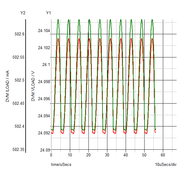 | VLOAD | AVG 24.097 MIN 24.0919 MAX 24.103 RMS 24.097 PK2PK 11.126m |