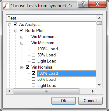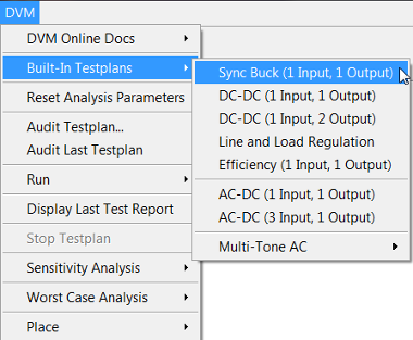 to run the Built-In Sync Buck testplan. This testplan has tests for both transient and AC
