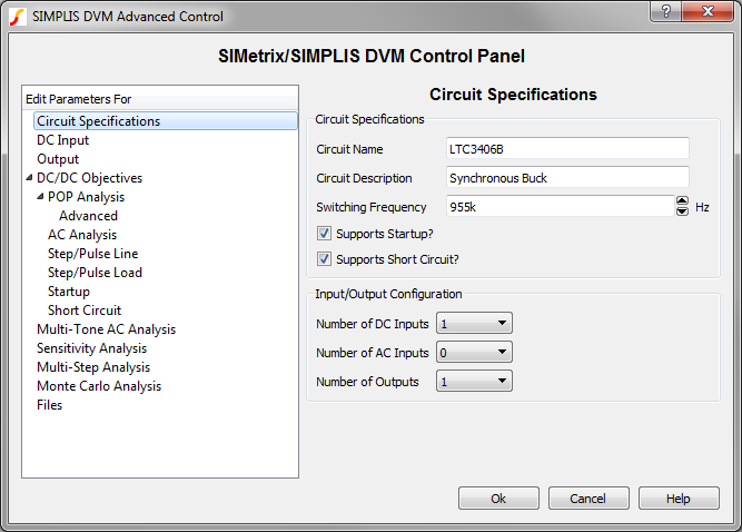 SIMetrix/SIMPLIS DVM Control Panel opens.