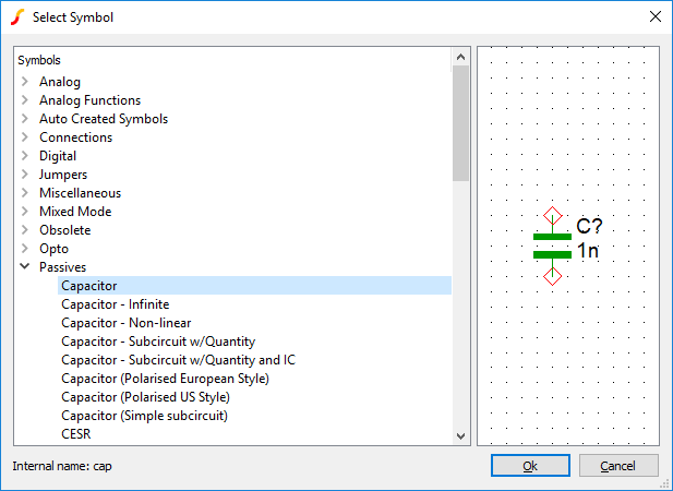 Opens the following dialog box allowing the user to select a schematic symbol from