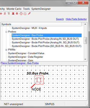 - Select and place a SystemDesigner - Bus Probe and a SystemDesigner
