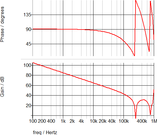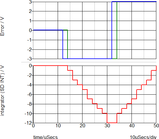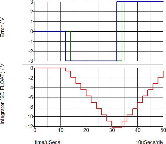 In the floating-point simulation, there is no quantization of the integrated signal.