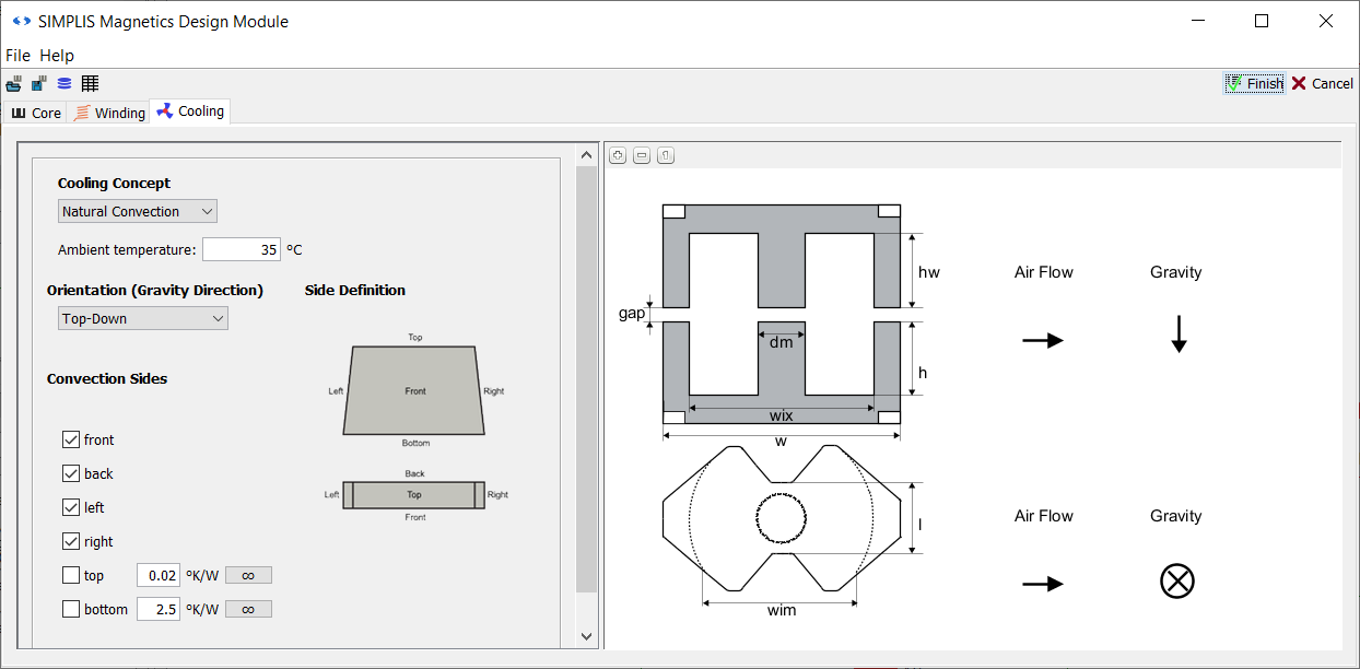 In this section of the tutorial you will modify the thermal properties of your inductor design in the Cooling tab of the main MDM window.