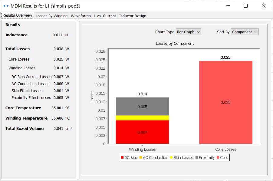 Here, despite the fact that one side of the inductor is barely conducting heat, due to the presence of the heat sink the temperature rise is only one degree from ambient. So, the modified design is slightly cooler then the previous one despite operating in an ambient temperature that is 10 degrees hotter. This shows how thermal modeling can have a large impact on your results.