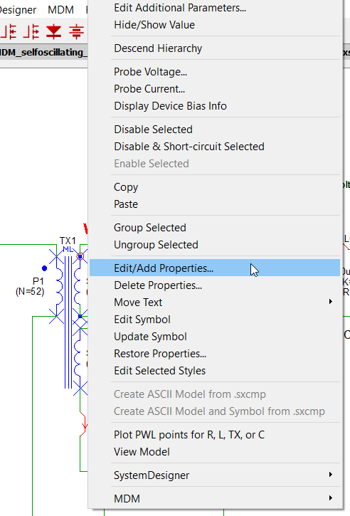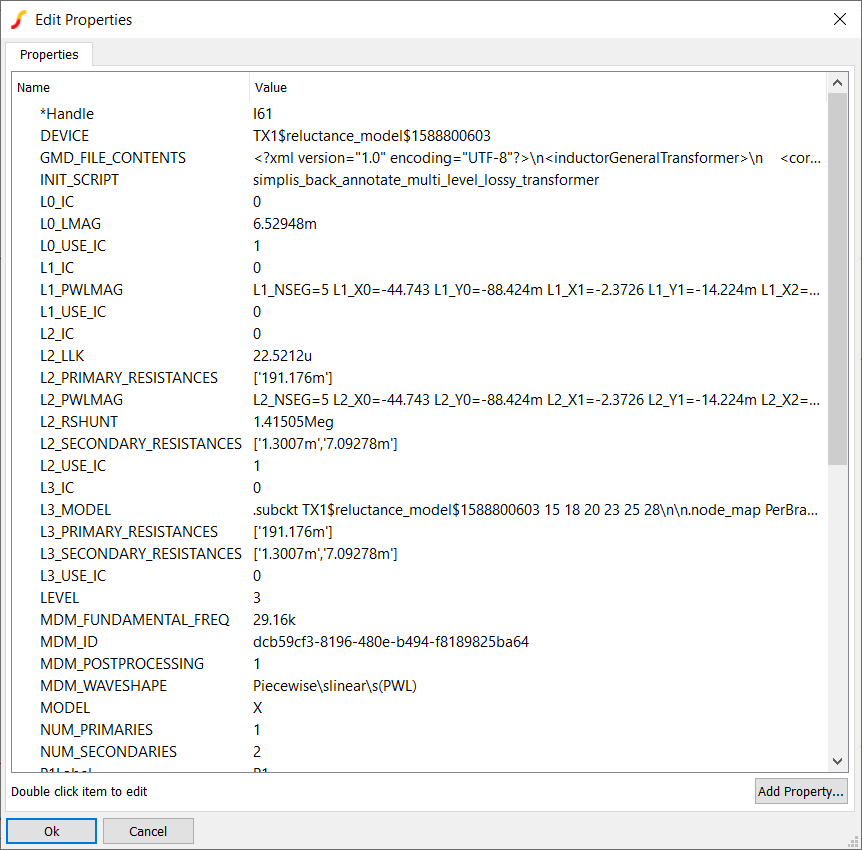 When you click Finish after creating an inductor or transformer design, a physical model of this inductor and transformer is stored by MDM in memory. However, when you shut down SIMetrix/SIMPLIS, this memory is of course cleared. To allow that physical model in MDM to be regenerated next time you start and open that same schematic, MDM generates a SIMPLIS MDM Geometry Design File that describes your design. After you click Finish, this file is not saved to disk. Rather, its contents - and XML string describing your design - are added as a symbol property to the inductor or transformer symbol you created and MDM model for.