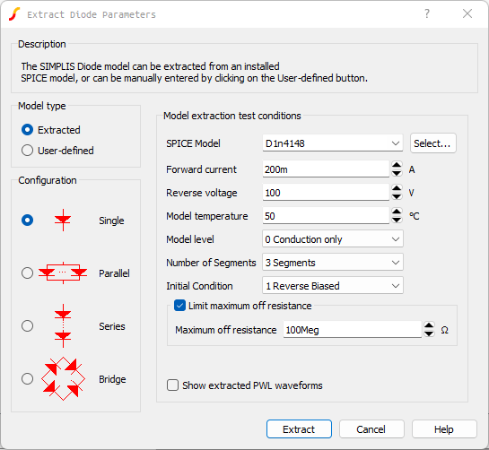 Result: The Extract Diode Parameters dialog