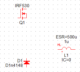 three symbols, an inductor, a diode, and a MOSFET. Use the illustration below as a