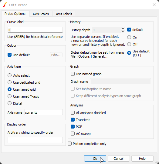 This section of the tutorial explains the process of automatically outputting curves to separate grids. While there are several ways to interactively move curves to new grids on the waveform viewer (e.g. ), these methods need to be run after every simulation. Instead of describing the interactive methods, this topic focuses on automatically making these measurements by adding the measurement definitions to the fixed probes.
