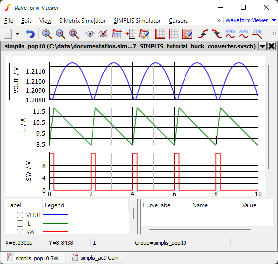 A schematic saved at this state can be downloaded here: 8_SIMPLIS_tutorial_buck_converter.sxsch.