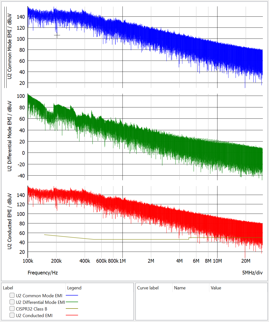 If the EMI filter is disabled or removed, the LISN will show that the conducted EMI exceeds the limits set by the CISPR32 standard: