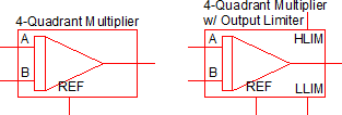The SIMPLIS 4-Quadrant Nonlinear Block (NLB) components are primitive components in SIMPLIS which support the modeling of PFC controllers. The 4-Quadrant versions were introduced with version 8.30, and will require 8.30 or a newer version of SIMPLIS. These NLB components are not intended for general-purpose nonlinear modeling. For alternative multipliers, see the PWM Multipliers and PWL Multipliers topics. For single quadrant versions of the NLB Multipliers, see Non-Linear Block (NLB) Multiplier/Dividers.