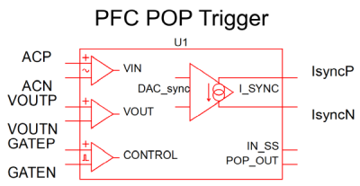 | POP_OUT | This pin does not have to be connected to any other node in the schematic. The voltage of this pin is the output of the PFC POP Trigger’s embedded POP Trigger during a POP analysis. |