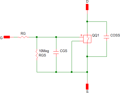 Level 0 models a switch with on/off resistance values, body diode, and gate capacitance. The Level 0 Model can be used for AC Bode Plots and for simulating output voltage during load and line transients when the actual switching waveform shapes are not critical.