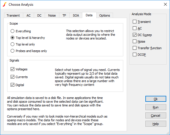 Top level only Only signals from the root schematic will be saved. Data for fixed probes and keeps (see below) will also be saved.