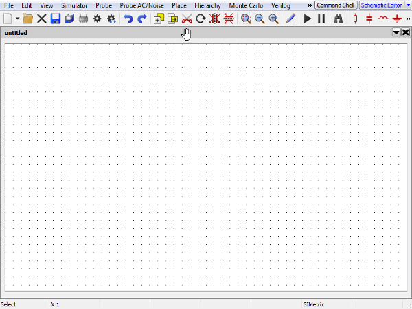 A blank schematic. The draggable title bar is shown shaded grey at the top of the schematic labelled 'untitled', along with the drag available cursor. |
