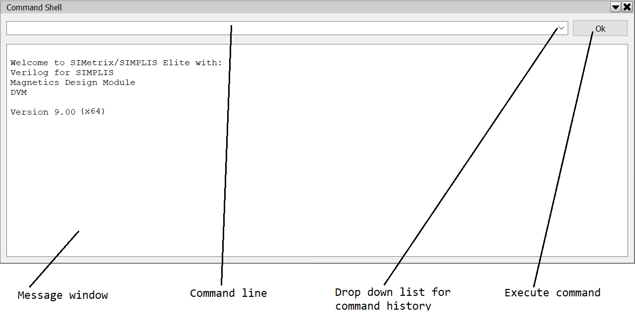 The vast majority of operations with SIMetrix can be executed from menus or pre-defined keys and do not require the use of the command line. However, a few more advanced operations do require the use of the command line. From the command line you can run a script or an internal command. You can also define a new menu to call a script, command or series of commands. In fact all the built in menu and keys are in fact themselves defined as commands or scripts. These definitions can be changed as well as new ones defined. See Editing the Menu System.